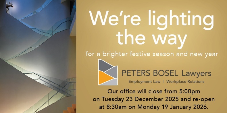 At Peters Bosel Lawyers, all we do is employment law. Consequently, every day of the week our team are working on matters that just pertain to this specialist and rapidly-changing area of law.